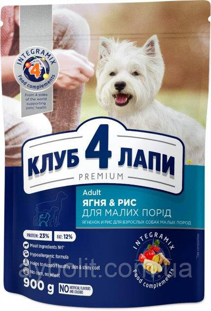 Сухой корм для взрослых собак мелких пород Club 4 Paws (Клуб 4 Лапы) Премиум Ягненок и Рис 900 г